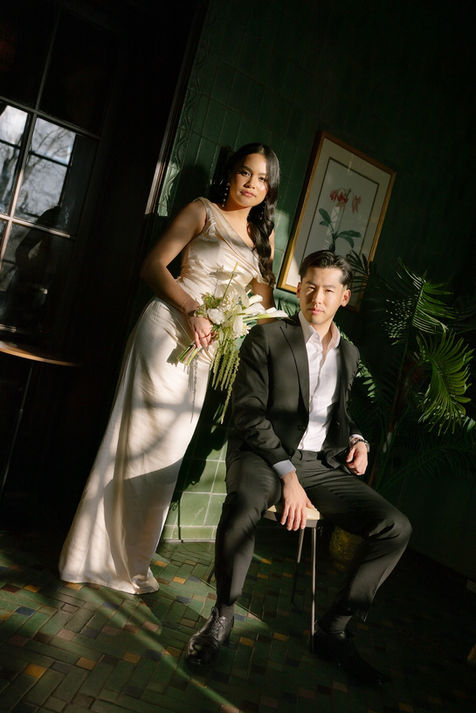 The decision to bring two outfits was one of our favourite parts of this session. Carol and Calven arrived in their first look and we worked through the more classic, elegant version of their story together. Then midway through the session we did a wardrobe change and the whole energy shifted.